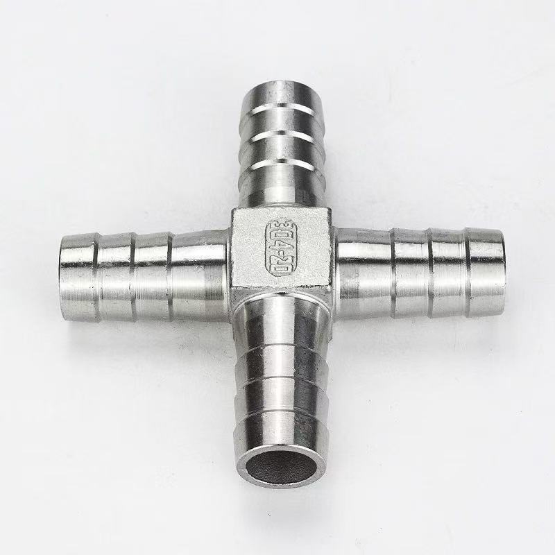Jako profesionální výrobce potrubních armatur v Číně nabízí Shenchi Factory armaturu pro vodní potrubí Cross-Type Pagoda – čtyřcestnou odbočovací komponentu. Jeho hlavní tělo obsahuje čtyři porty „pagody“ (ostnaté) ve tvaru kříže, které jsou navrženy tak, aby rovnoměrně rozdělovaly jeden vstup tekutiny do tří větví nebo sloučily více vstupů do jednoho. Vyrobeno z mosazi, nerezové oceli 304 nebo nerezové oceli 316L, produkt vykazuje výjimečnou odolnost proti korozi a je vhodný pro aplikace v úpravě vody, pneumatických systémech, zemědělském zavlažování a lékařských zařízeních. Ostnaté hřebeny mají protiskluzovou drážku; při použití ve spojení s hadicovými sponami zajišťují bezpečné spojení, usnadňují snadnou instalaci a umožňují účinné odvádění kapaliny „jeden v, tři ven“.