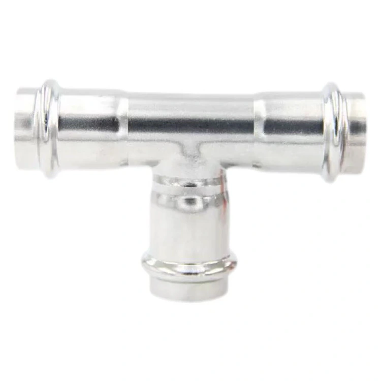 Double-Press Equal Tee je vyrobeno z vysoce kvalitní nerezové oceli. Základní materiál nabízí vysokou pevnost a dobrou houževnatost, zásadně eliminuje riziko deformace a praskání. To poskytuje základní podporu pro trvanlivost a odolnost produktu proti korozi, takže je vhodný pro složité provozní podmínky.